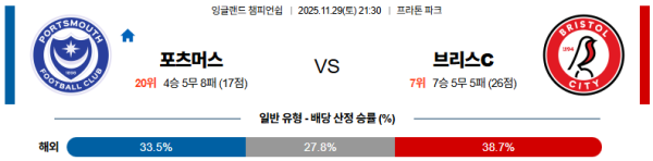 결국 이 경기는 포츠머스가 버티는 시간을 얼마나 길게 가져가느냐가 관건이지만, 전술적 상성과 공격 전개 완성도에서는 브리스톨이 한 발 앞선 흐름으로 볼 수 있습니다.