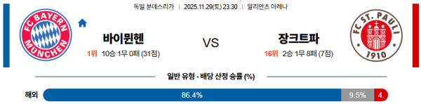 [검증마트]11월29일 바이에른뮌헨:장크트파울리 분데스리가 분석