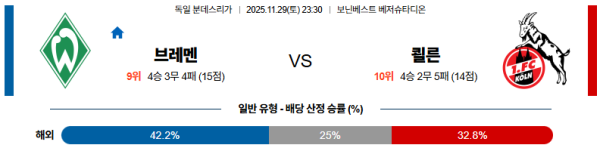 브레멘이 홈에서 조금 더 전진하려 해도 쾰른의 수비 전환이 빠르게 작동하여 박스 근처에서 완전히 열린 슈팅 각을 만드는 장면은 제한적일 것입니다. 반대로 쾰른이 라인을 올려도 브레멘의 수비 전환이 빠르기 때문에 뒷공간을 크게 내줬다가 실점하는 그림보다는 서로 조심스러운 전개 속에서 중원 싸움이 길어질 가능성이 큽니다. 이런 흐름에서는 세트피스가 더욱 중요해집니다. 코너킥과 프리킥 상황에서 센터백들이 올라와 제공권을 노리는 장면이 사실상 유일한 확실한 득점 루트가 될 것입니다.