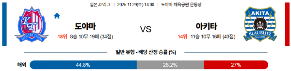 이 경기는 구조적으로 도야마에게 상당히 까다로운 흐름이 예상되는 매치업입니다. 도야마는 기본적으로 라인을 올려서 붙는 축구를 지향하지만, 하프스페이스 수비가 느슨해 중원 사이 공간이 텅 비는 시간이 길어집니다. 수비 라인이 뒤로 물러나고 중원이 위로 떠 있을 때 그 사이가 크게 벌어지는데, 이 구간에서 상대 미드필더가 자유롭게 볼을 받기 시작하면 도야마 수비는 계속 뒤로만 쫓아가는 그림이 나오기 쉽습니다. 세컨볼 이후 재정비가 늦어지고, 클리어링 이후에도 라인을 올리지 못한 채 박스 앞을 내주는 장면이 눈에 띕니다. 반면 아키타는 고마츠와 사토가 전방에서 1차 경합을 만들어 주고, 그 뒤를 후지야마가 따라 들어가 라인 사이에서 볼을 받는 구조가 잘 잡혀 있습니다. 도야마가 클리어한 공이 완전히 터치라인 밖으로 빠져나가지 않는 이상, 하프스페이스에 자리 잡은 후지야마가 이 두 번째 볼을 다시 자기 발밑으로 끌어오는 장면이 반복될 가능성이 큽니다. 도야마의 경우 하프스페이스 수비가 느슨해 중원 사이 공간이 텅 비어 있고, 그래서 세컨볼 이후 재정비가 늦어지고 있다는 점을 감안하면, 이 구간은 아키타가 집요하게 파고들 최적의 타깃이 됩니다. 아키타의 에이스 후지야마가 이 구간을 계속 물고 늘어지며 볼을 받아낸다면, 결국 라인 사이에서 결정적인 유효슈팅이 만들어질 수밖에 없는 구조입니다. 고마츠가 센터백을 등지고 버텨주고, 사토가 뒷공간으로 빠져 나가 수비 라인을 끌어내면, 그 뒤의 빈 공간은 후지야마가 자유롭게 활용할 수 있는 공격 작업실이 됩니다. 따라서 도야마 입장에서는 중원 라인이 어느 정도 내려와 라인 간격을 줄이는 조정이 필수적입니다. 그러나 그렇게 되면 자신들이 원래 잘하던 전방 압박과 빠른 전진 패스를 포기해야 하는 딜레마에 직면하게 됩니다. 그럼에도 불구하고 도야마가 홈에서 가만히 내려앉기만 하기는 어렵기 때문에, 결국 라인을 올렸다 내렸다 하는 과정에서 하프스페이스가 다시 벌어지는 순간이 반드시 한두 번은 나올 것입니다. 아키타는 그 짧은 순간을 노려 후지야마에게 라인 사이에서 볼을 공급하고, 박스 앞에서 중거리 슛이나 스루패스를 통해 한 방에 승부를 찌르는 시나리오를 가지고 있습니다. 특히 후반으로 갈수록 도야마의 세컨볼 대응과 라인 재정렬 속도가 떨어지기 시작하면, 이 하프스페이스 공략은 더욱 노골적으로 드러날 가능성이 큽니다. 종합적으로 보면, 도야마의 구조적인 약점과 아키타의 강점이 정확히 맞닿아 있는 상성이라 경기 흐름은 점점 아키타 쪽으로 기울어질 공산이 큽니다. 스코어 자체는 1~2골 차 박빙으로 수렴할 수 있지만, 내용 면에서는 아키타가 라인 사이를 장악하면서 주도권을 쥐는 그림에 더 가깝습니다.