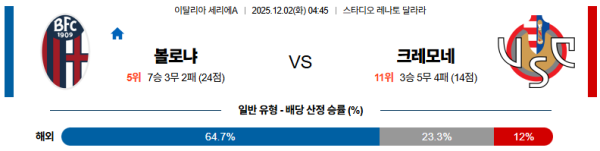 [검증마트]12월02일 볼로냐:크레모네 세리에A 분석