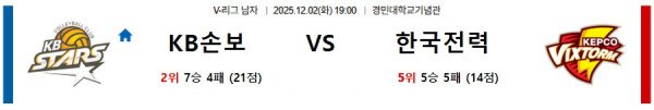 마무리 코멘트 - KB손해보험은 비예나와 야쿱, 나경복, 이준영으로 이어지는 공격·서브 라인이 서로의 약점을 가려 주면서도 강점을 극대화하는 구조를 갖추고 있다. 반면에 한국전력은 김정호와 중앙 블로커들의 개인 기량은 좋지만, 리시브와 세터의 기복이 겹치는 순간 공격 루트가 단조로워지는 패턴을 벗어나지 못하고 있다. 그래서 이 경기는 세트 초반 접전 구간이 있더라도, 시간이 흐를수록 KB손해보험의 짜임새 있는 공격 전술과 서브 압박이 누적되면서 승부를 정리하는 흐름으로 흘러갈 가능성이 높다.