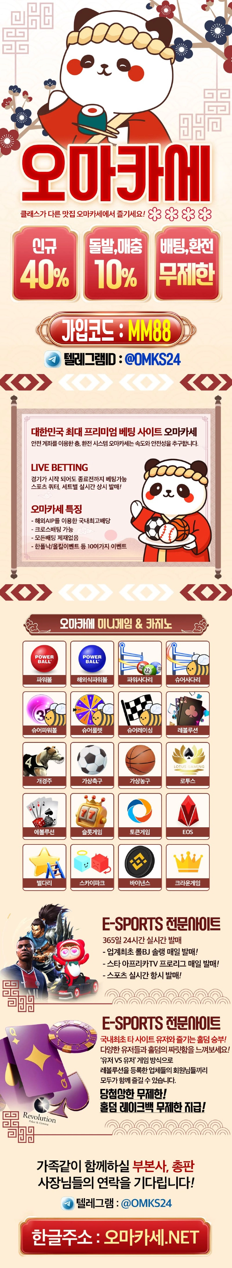 여기에 더해서 오마카세는 크로스배팅과 라이브 배팅이 가능합니다.