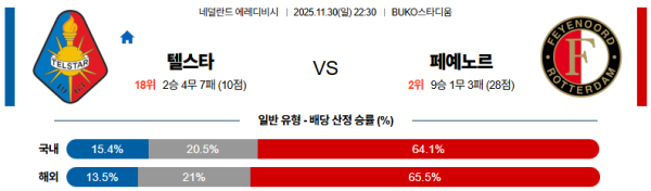 [검증마트]11월30일 텔스타:페예노르트 에레디비지 분석