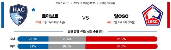[검증마트]12월01일 르아브르:릴OSC 리그앙 분석