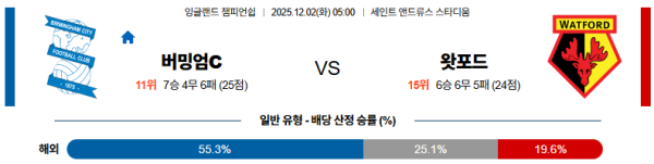[검증마트]12월02일 버밍엄시티:왓포드 잉글랜드챔피언쉽 분석