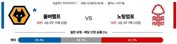 이 경기는 단순히 승점 3점 이상의 의미를 가진다고 할 수 있습니다. 울버햄튼 입장에서는 강등권에서 벗어나기 위한 첫 단추이자, 구단 재정과 팀 분위기까지 연쇄적으로 연결되는 승부입니다. 스트란드 라르센을 앞세운 직선적인 공격과 중원 압박이 제대로 힘을 받기 시작하면, 홈 팬들의 에너지와 맞물려 경기 흐름을 끌고 갈 수 있는 여지는 충분합니다. 노팅엄의 개별 기량을 무시할 수는 없지만, 원정에서 간격이 벌어지는 구간이 길어질 경우 울버햄튼의 절실함과 홈 이점이 결국 스코어로 이어질 가능성이 높습니다. 종합하면, 현실적인 선택은 울버햄튼 승리 쪽에 방향을 두고 접근하는 그림이 더 설득력 있어 보입니다.