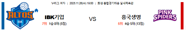[검증마트]2025-11-26 19:00V-리그 여자부 IBK 기업은행 vs 흥국생명
